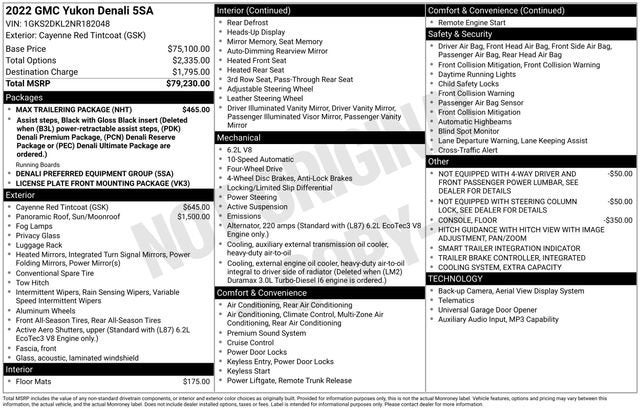 Cayenne Red Tintcoat 2022 GMC Yukon Denali 4D Sport Utility 4WD EcoTec3 6.2L V8 10-Speed Automatic with Overdrive
