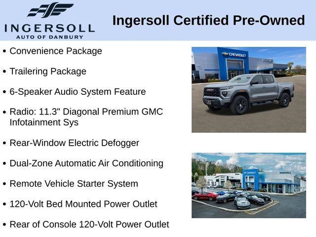 The striking exterior of the 2023 Canyon Elevation exudes a bold, confident presence, with its distinctive grille, sleek lines, and 18-inch dark gray painted aluminum wheels. Step inside the spacious cabin, and you'll be greeted by premium cloth seating, a user-friendly 11.3-inch diagonal premium GMC Infotainment System, and an array of thoughtful amenities that cater to your every need.