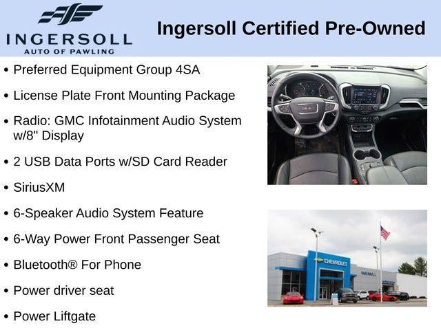2 USB Data Ports, 2 USB Data Ports w/SD Card Reader, 6-Speaker Audio System Feature, 6-Way Power Front Passenger Seat, Auto High-beam Headlights, Bluetooth® For Phone, Driver & Front Passenger Heated Seats, Front Passenger 2-Way Power Lumbar, Fully automatic headlights, Heated door mirrors, Heated steering wheel, License Plate Front Mounting Package, Perforated Leather-Appointed Seat Trim, Power driver seat, Power Liftgate, Preferred Equipment Group 4SA, Radio: GMC Infotainment Audio System w/8 Display, SiriusXM, Wheels: 18 x 7 Silver Painted Aluminum, Wireless Apple CarPlay/Wireless Android Auto.