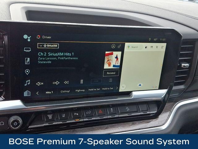 120-Volt Bed Mounted Power Outlet, 120-Volt Interior Power Outlet, 170 Amp Alternator, 3.73 Rear Axle Ratio, 6-Speaker Audio System, Adaptive Cruise Control, Auto-Dimming Inside Rear-View Mirror, Bluetooth® For Phone, BOSE Premium 7-Speaker Sound System, Chevrolet Connected Access Capable, Chrome Door Handles, Chrome Mirror Caps, Color-Keyed Carpeting Floor Covering, Compass, Deep-Tinted Glass, Durabed Pickup Bed, Electric Rear-Window Defogger, Electronic Cruise Control with Set and Resume Speed, EZ Lift Power Lock and Release Tailgate, Front 40/20/40 Split-Bench Seats with Lockable Storage, Front LED Fog Lamps, Front Rain-Sensing Wipers, Front Rubberized Vinyl Floor Mats, HD Rear Vision Camera, Heated 2nd Row Outboard Seats, Heated Steering Wheel, Hitch Guidance with Hitch View, in-Vehicle Trailering App System, Keyless Open and Start, LTZ Convenience Package, LTZ Convenience Package II, LTZ Plus Package, Manual Tilt and Telescoping Steering Column, OnStar Services Capable, Perforated Leather-Appointed Front Outboard Seat Trim, Power Door Locks, Power Front Windows with Driver Express Up/Down, Power Front Windows with Passenger Express Up/Down, Power Rear Windows with Express Down, Power Sliding Rear Window with Defogger, Preferred Equipment Group 1LZ, Push Button Start, Rear Rubberized Vinyl Floor Mats, Rear Wheelhouse Liners, Remote Vehicle Starter System, Safety Package, SiriusXM with 360L Trial Subscription, Standard Tailgate, Steering Wheel Audio Controls, Suspension Package, Unauthorized Entry Theft-Deterrent System, Universal Home Remote, Up-Level Rear Seat with Storage Package, Wheels: 18 Machined Aluminum with Silver Painted Accents, Wi-Fi Hotspot Capable, Wireless Phone Projection, Wrapped Steering Wheel.